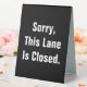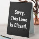 You can edit the white display text to create appropriate custom messages for your business. The display text on the black sign currently says: Sorry, This Lane Is Closed.