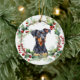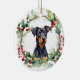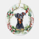 Soulful Doberman Pinscher Dog in Holly Twig Wreath Ceramic Ornament