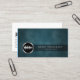 This simple and dark themed sound engineer business card features a chrome icon of a sound wave enclosed within a chrome circle. Your business name and text/tagline appear within a black text panel strip that runs from the icon from the left towards the right edge of the card. The background of the card consists of a dark themed grunge pattern. Your contact details appear on the lower left on the back of the card. Perfect for entertainment, show business, talent, music, musician, events, professional, impact, dark themes.