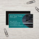 A sound mixing console with all its knobs and switches form the main background of this business card image. Your name and details appear over a green semi-sphere background on the left. This business card is especially suited to sound engineers, recording engineers and DJs, but is also suitable for anyone in the music or audio industry.