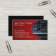 A sound mixing console with all its knobs and switches form the main background of this business card image. Your name and details appear over a red semi-sphere background on the left. This business card is especially suited to sound engineers, recording engineers and DJs, but is also suitable for anyone in the music or audio industry.