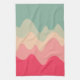 A design made up of irregular wave or hill like shapes arranged like a landscape with a progression of bands one behind or on top of another abstractly playing with colour and space. The design is also very reminiscent of sound and music with the wave like shapes and harmonising colours.
