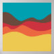 A design made up of irregular wave or hill like shapes arranged like a landscape with a progression of bands one behind or on top of another abstractly playing with colour and space. The design is also very reminiscent of sound and music with the wave like shapes and harmonising colours.