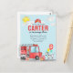 Modern Cute Sound the Alarm Fire Truck Dalmatian Dog Balloon Firefighter Birthday Invitation