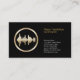 This simple sound engineer business card features a jet black background with a gold sound wave icon on the left side of the card, while your name, title and contact details appear on the right. Designed for music, sound engineer, band, musician, dj, deejay, disc jockey, drums, drummer, trumpet, creative arts themes.