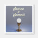 "Source and Summit" faux canvas design. Holy Eucharist and Chalice. Host suspended above chalice. IHS monogram Iesus (Jesus) Hominum (of humankind) Salvator (Saviour).