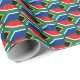 A hexagonal shaped flag of South Africa forms the basis of the tessellated design on this wrapping paper. This would be the perfect way to gift wrap a present for or from someone with a South African connection.