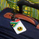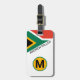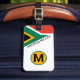 Capture the essence of diversity and unity with this typography design inspired by the South African flag. A vibrant duo-tone pattern complemented by personalised monogrammed initials, curated for modern travel luggage tags tailored for men. An exceptional gift choice for fathers, brothers, husbands, and colleagues. Reflecting the iconic colours of red, green, blue, black, white, and yellow, this design embodies the rich and harmonious South African-inspired style.