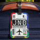 This stylish and cool South Africa, JNB airport code luggage tag will surely help you stand out from the crowd. As well as being cool, it also includes authentic airport information and a address pocket on the reverse.