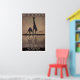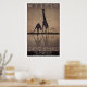 Two giraffes drink at a watering hole. This classic art poster advertising South Africa. A perfect addition to any decor.