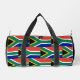 Flag of South Africa on a large duffle bag. The pattern design has African style to it. Great for trips, gymnastics, etc.