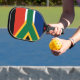 Put your South African pride on display when you play against your pickle ball opponent, with the multi-colours of the South African flag on your paddle. You can also personalise it by typing in your initials.