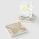 The coasters are gorgeous, a quality feel and heavy weight. They look like a precious archeological find. A rustic stone juxtaposed with a modern floral black and white print. I like the way the print goes slightly imperfect on the cut stone edges giving them a kind-of natural beauty.