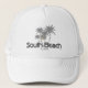 Cool South Beach, Florida Palms graphic with grey typography. Trucker hat design by Inge Lewis. Perfect gift or souvenir for family, friends or visitors. Find more matching items at the ingeinc.com store.