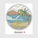 South Beach hand drawn illustration with mountains and ocean waves in the background. Perfect for anyone who loves to visit South Beach.
