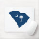 The shape of South Carolina in blue with white with the familiar palmetto and crescent.
