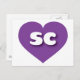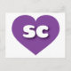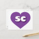 This postcard features a shapely and vibrant purple heart containing the bold, white, rounded lower case letters sc, a playful abbreviation for South Carolina, the palmetto state. The reverse side of the postcard is blank, awaiting your personalised text or handwritten sentiments.