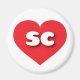This magnet features a vibrant red heart containing the bold, white, rounded lower case letters sc, a playful abbreviation for South Carolina, the palmetto state.