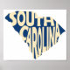 In this playful word art design we took the Silhouette shape of South Carolina and stuffed, smashed, crammed, shimmied and manipulated all the letters of the states name inside, giving the impression the state is made out of its own name. There will be no mistaking your state pride when people see the shape of South Carolina and its name prominently displayed in yellow text with blue background. The Palmetto State. South Carolinian state slogan is Prepared in Mind and Resources. South Carolinas largest city is Columbia and is also the capital. South Carolina an original of the 13 colonies and the first to claim independents from Brighton during the American Revolution.