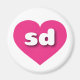 This magnet features a vibrant hot pink heart containing the bold, white, rounded, lower case letters sd, a playful abbreviation for South Dakota, the Mount Rushmore state.