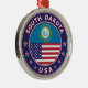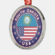 Badge of South Dakota with flag of South Dakota and flag of USA colors, rounded shape.