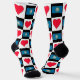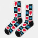 Fun socks for proud South Dakotans, featuring a unique chequered pattern with red hearts on the white squares, and a map of South Dakota filled in with the South Dakota state flag on the black squares. These add a fun touch to any outfit and are a great way to show your love for South Dakota and your pride in The Mount Rushmore State.