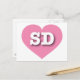 This postcard features a cool pink heart containing the bold white upper case letters SD, the official abbreviation for South Dakota, the Mount Rushmore state. The reverse side of the postcard is blank, awaiting your customised text or handwritten sentiments.