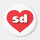 This magnet features a vibrant red heart containing the bold, white, rounded lower case letters sd, a playful abbreviation for South Dakota, the Mount Rushmore state.