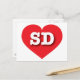 This postcard features a vibrant red heart containing the bold, white, upper case letters SD, the official abbreviation for South Dakota, the Mount Rushmore state. The reverse side of the postcard is blank, awaiting your personalised text or handwritten sentiments.