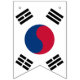 The South Korean flag is a white field with in the centre an emblem and four trigrams on each corner of the flag. The used colours in the flag are blue, red, white, black. The proportion of the South Korean flag is 3:2. The Flag of South Korea was adopted in 1883. The first use of the current flag design was in 1882. The last change to the current South Korean flag design was in 1948.