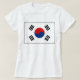 The front of this t-shirt boldly displays the South Korean flag with its distinctive red and blue yin-yang circle centred on a white background with black motifs surrounding. This is matched at the back by an attractive map of South Korea.