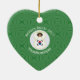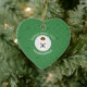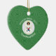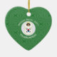 A heart shaped ceramic Christmas tree ornament with an angel dressed in the flag of the Republic of Korea or South Korea, on a white, circular background of squiggly squares. All of it sits on a background of green squiggly squares. Above the white circle are the words KOREAN ANGEL 20??. Change the question marks to match the year. Below, reads YOURNAMEHERE. Change that to your name or the name of your custom gift recipient. Design created especially for Christmas or holiday decor.