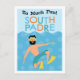A fun South Padre Texas cartoon style travel image with a hipster snorkeler underwater. In blue orange and turquoise.