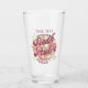 South Padre island Texas Retro Vintage Design featuring a disco ball in pink, and apricot peach hues. This beautiful beer glass is a perfect souvenir or gift for South Padre Island residents, visitors, tourists or fans.