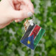 Keychain with the flag of South Sudan in wavy fabric style design. This design features the South Sudanese flag colours and design with a beautiful waving material textured effect. This flag design is a great way to show you are proud to be from South Sudan.