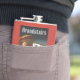 The flask itself is fine. It’s a cheap flask, obviously bought in bulk, however am prepared to overlook that. Given that it is a personalized item, I would have liked to have seen gift boxing instead of the generic packaging. Terrible printing, and/or quality. It’s a cheap, tacky vinyl. It is not cut straight and is also applied in a way that it is overhanging the bottom, causing the glue to catch on items and it will eventually roll and tear, damaging the wrap.