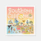 Bright and colourful scene offers a spectacular view of Southern California - wacky characters frolic on the beach and desert of SoCal showcasing Los Angeles, Orange County, San Diego, Santa Barbara, Riverside, Palm Springs, El Centro, Salton Sea, Anza Borrego and Joshua Tree parks as well as the border cities of Tijuana, Tecate and Mexicali. This charming scene has it all – a surfer hangs ten while a killer whale leaps out of the water, zoo animals greet the tourists, wine lovers make a toast as a hiker is noticed by a UFO and much more…