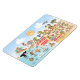 Bright and colourful scene offers a spectacular view of Southern California - wacky characters frolic on the beach and desert of SoCal showcasing Los Angeles, San Diego, Orange County, Santa Barbara, Riverside, Palm Springs, Anza Borrego and Joshua Tree parks as well as the border cities of Tijuana, Tecate and Mexicali. This charming scene has it all – a surfer hangs ten while a killer whale leaps out of the water, zoo animals greet the tourists, a muscular beach couple both flex to impress as a T-Rex roars a challenge and a tank moves into position and much more…