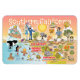 Bright and colourful scene offers a spectacular view of Southern California - wacky characters frolic on the beach and desert of SoCal showcasing Los Angeles, Orange County, San Diego, Santa Barbara, Riverside, Palm Springs, El Centro, Salton Sea, Anza Borrego and Joshua Tree parks as well as the border cities of Tijuana, Tecate and Mexicali. This charming scene has it all – a surfer hangs ten while a killer whale leaps out of the water, zoo animals greet the tourists, wine lovers make a toast as a hiker is noticed by a UFO and much more…