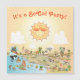A cartoon of Southern California – showcasing Los Angeles, Anaheim, Long Beach, San Diego and other cities plus most beaches. Cartoon characters of all sorts swim and splash and play beneath the bright California sun shining high above it all.