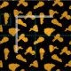 Black fabric patterned with pieces of tasty southern fried chicken pieces