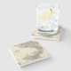 The coasters are gorgeous, a quality feel and heavy weight. They look like a precious archeological find. A rustic stone juxtaposed with a modern floral black and white print. I like the way the print goes slightly imperfect on the cut stone edges giving them a kind-of natural beauty.