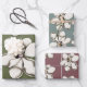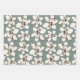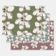 Magnolia flowers patterned wrapping paper sheets. White floral print, in various sizes, over dark green, colonial grey-blue, and mauve pink. This is a vintage illustration with a beautiful and unqiue likeness to the southern magnolia tree flower.