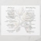 Folded wedding program template with magnolia flowers background. Entwined hearts decorate the front, beneath the names, and on the last page above the "thank you" message to guests. The southern magnolia is a big, white flower and this design is perfect for any couple marrying in the south.