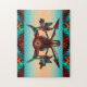 Enjoy this Unique "One of a Kind" Southwest Buffalo Skull Puzzle! It Features A Southwest Buffalo or Bison Skull and Arrows with Feathers on a Turquoise and Orange Sunset Background...Surrounded by Southwest Border in Turquoise, Orange and Black!