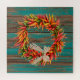 Southwest Chile Ristra Wreath Weathered Blue Wood Jigsaw Puzzle