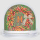 Personalise this snow globe with an initial, monogram, name or text on this original painting of a colourful chile pepper ristra wreath tied with a raffia bow on a rustic wood wall. The original painting was inspired by the chile ristras and wreaths the artist hung at her home in New Mexico. Ristras are a symbol of welcome said to bring good health and good luck.