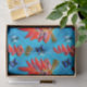 Perfect to celebrate Cinco de Mayo! It'll be a fiesta at any party with this festive southwest - themed gift wrapping paper! The original art was created as a fused glass tile, so the art really seems to glow. The chile / chilli peppers are in bright shades of red, and there are little blue glass butterflies as accents. The background is vibrant turquoise blue! The southwestern tile diamond pattern sets off the gift wrap beautifully. Whimsical, original, unique glass tile, photographic image and design by Tuzi Williams.