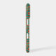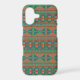 My original verdigris copper patina colored design with geometric borders in teals, turquoise and copper colors inspired by the local colors and patterns around my home in the desert southwest.