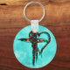 Put Your Keys on this Unique "One of a Kind" Southwest Cross And Heart Keychain! It Features a Large Spiritual Southwest Cross and Heart in Turquoise, Orange and Black on Turquoise and White Background!